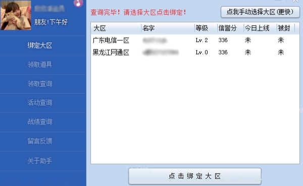 登录成功后,您需要选择并绑定自己的游戏大区。这是为了确保软件能够准确地识别并领取您所在大区的活动奖励。
