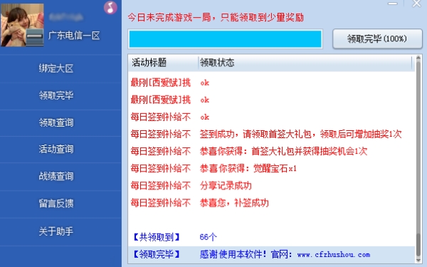 绑定好大区后,您可以在软件界面上找到“领取道具”的按钮。点击该按钮,软件会自动检测当前可领取的活动奖励。