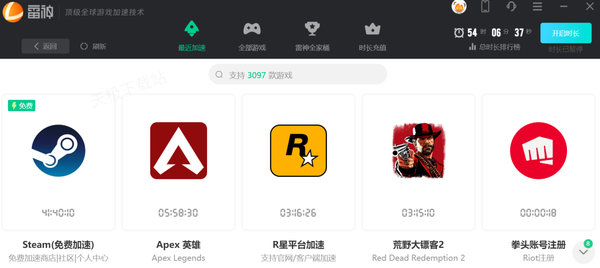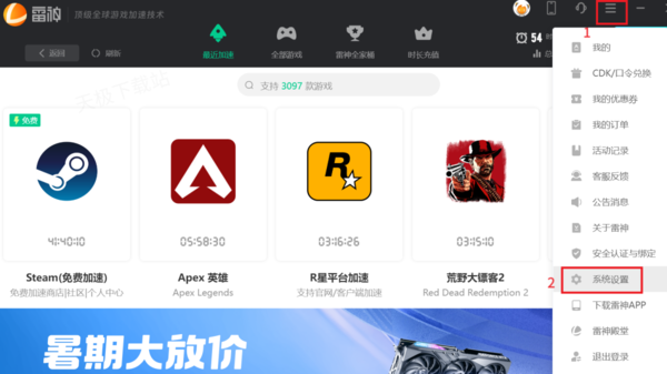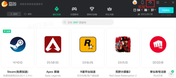 1.打开雷神加速器,登录账号。