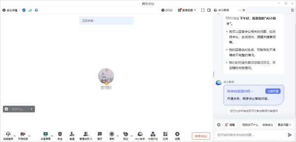 腾讯会议的AI会议功能目前无法免费使用,需要开通腾讯会议的会员才可享受。不过,由于腾讯会议的会员,并非只解锁这一功能,还享受超清会议、会议室人数上限提升等多种特权,总体来说较为划算,如果你信任腾讯会议,那强烈建议开通会员以解锁AI会议功能。