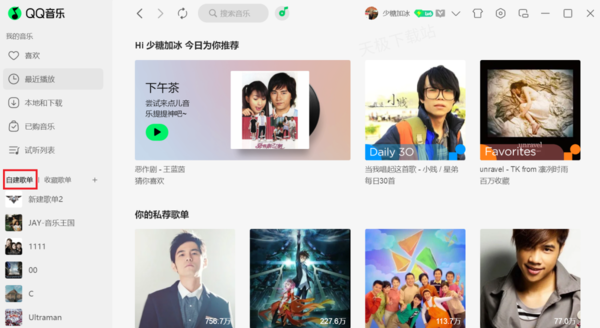 1.打开QQ音乐并登录账号,在左侧【自建歌单】中找到需要投稿的歌单。