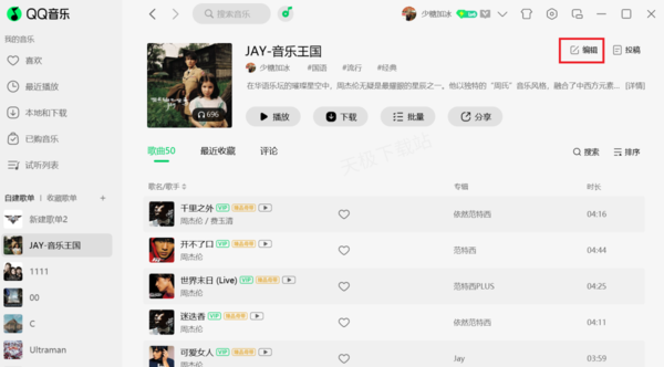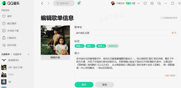 3.对歌单的封面、名称、标签、描述进行详细编辑。