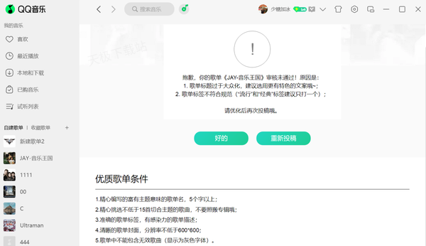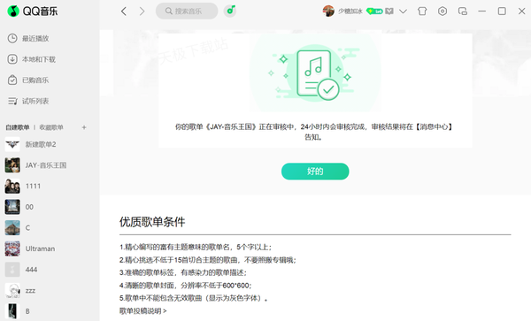 5.通过初步审核后,QQ音乐会在24小时告知是否投稿成功。