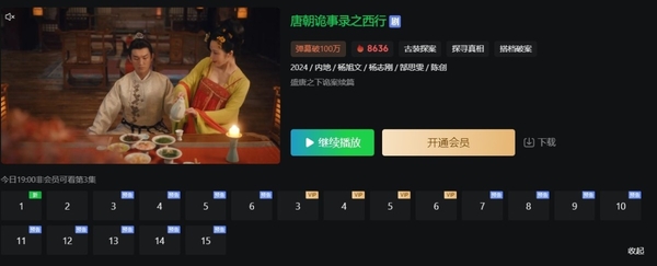 据悉,《唐朝诡事录之西行》全剧共40集,会员用户每日19:00可享受两集连播的福利,首更即放出六集,让会员观众一次看个过瘾。而非会员用户则需耐心等待,每日19:00更新一集,首更两集,逐步揭开西行路上的重重迷雾。
