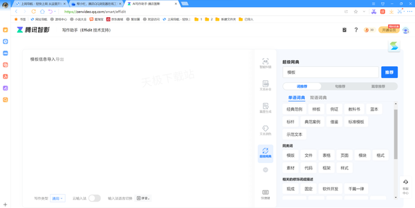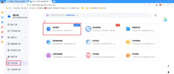 2.在插件中心页面的左侧找到并点击【文本工具】,打开上方腾讯智影【写作助手】。
