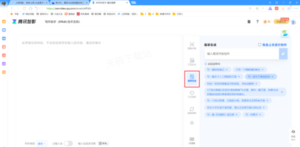 3.篇章生成。输入文章的主题,并对其进行简单描述,写作助手就能在几秒钟生成一篇高质量文章。