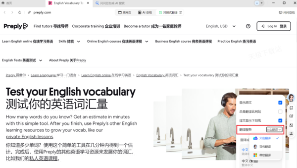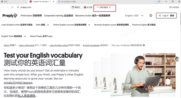 2.打开网址后,在页面上方可以看到新增了【对照式翻译】选项,点击即可对网页进行对照翻译。