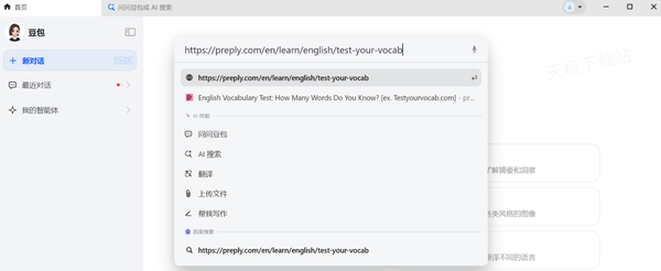 1.打开豆包客户端,点击上方搜索框,输入需要翻译的外语网址。