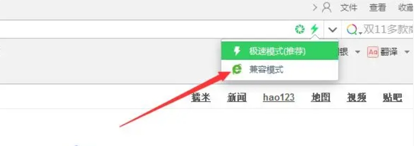 2、点击地址栏图标:在地址栏的右侧,你会看到一个图标,这个图标可能是闪电形状(代表极速模式)或Internet Explorer的图标(代表兼容模式)。如果当前是极速模式,图标会显示为闪电形状。