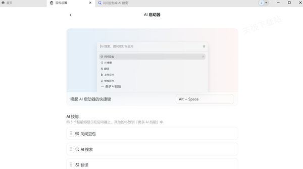 作为一款全能AI软件,豆包能为我们提供AI聊天、AI写作、AI绘画等搞笑智能工具,同时,为进一步优化了我们的上网体验,豆包还推出了三款AI快捷工具,分别是AI划词工具栏、AI启动器、AI写作(Beta),无需打开客户端即可使用各种AI功能,非常方便,下面天极小编将为大家详细介绍这三种AI快捷工具。