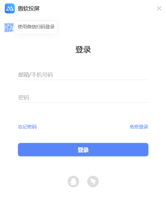 上面小编为大家傲软投屏登录方式有哪些,接下来继续为大家介绍怎进行登录,微信与傲软投屏扫码登录,需要打开对应软件,打开扫一扫功能进行登录,点击QQ或者钉钉则会打开新的网页,输入QQ号或者打开手机软件进行扫码登录。?