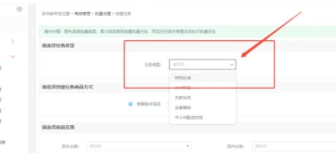 在“商品管理”下,继续寻找“批量设置”选项,并点击进入。在批量设置页面中,选择“任务类型”为“限购区域”。