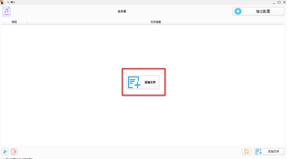 3、在MP3格式界面,找到并点击“添加文件”按钮,浏览并找到你想要转换的音频文件。