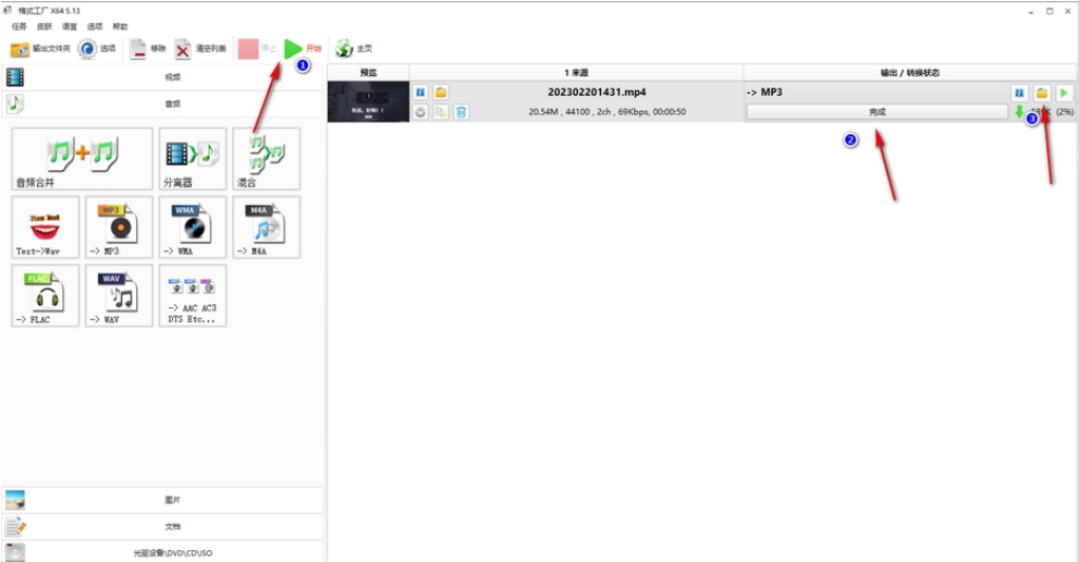 4、在主界面中找到并点击“开始”按钮,转换完成后,你可以在指定的输出文件夹中找到转换后的MP3文件。