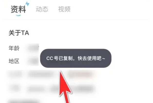 在个人主页中,你会看到自己的CC号展示在页面上。找到【CC号】选项,并在其后方寻找并点击【复制】图标。这个图标通常是一个纸张和笔的组合,或者是直接标有“复制”字样的按钮。