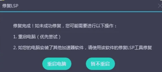 在某些情况下,修复LSP后可能需要重启电脑才能完全生效。虽然UU加速器的修复过程通常会自动处理这一步,但如果你发现修复后问题依旧存在,可以尝试手动重启电脑。