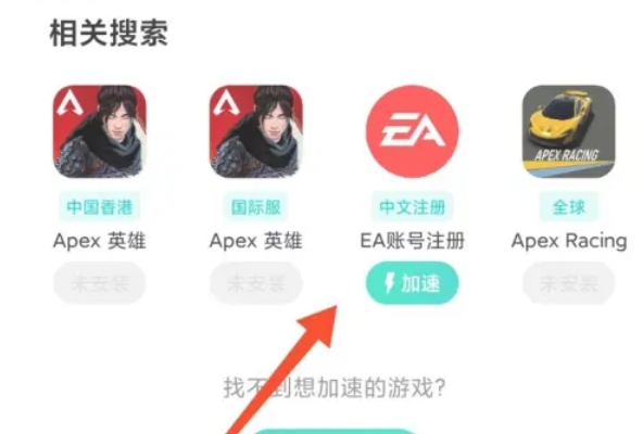 在UU加速器的搜索栏中输入你想要入库的游戏名称,比如“Apex Legends”或简称“Apex”。点击搜索后,系统会显示出相关的游戏加速选项。