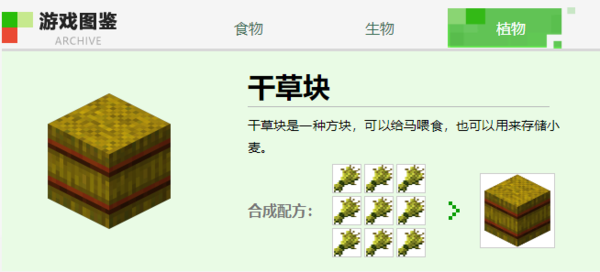1、若玩家拥有干草块,将干草块放置于工作台中可获得小麦*9;