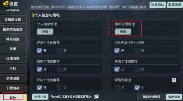 2.在设置界面左侧找到【其他】,然后点击右侧隐私权限管理下方的【查看】。