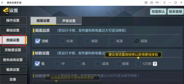 1.打开使命召唤手游,进入设置页面,点击左侧【音画设置】。