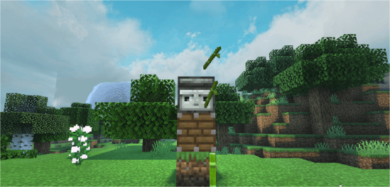 我们还要在矿车上放上草方块和其他泥土方块来种植更多的竹子。
