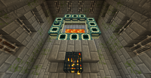 2、收集出足够的道具数量以后,我们来到地牢场景,在世界中拥有两个地牢,都会有末地传送门的固定放置点。如下图所示。