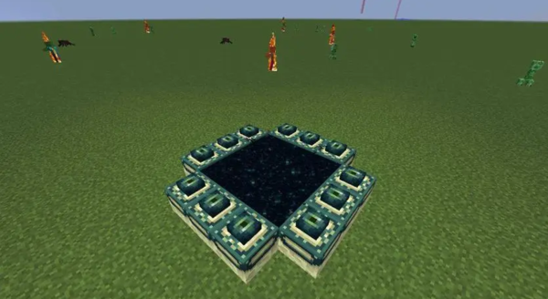 3、很少数的地牢会放置好末地传送门的框架,在没有框架的情况下,我们就要自己使用12个末地传送门方块摆放缺少死角的末地传送门框架。