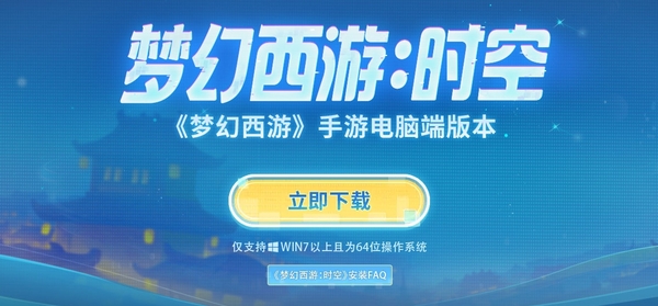 2、电脑系统。以官网直接下载梦幻西游手游电脑版的情况看,该游戏最低支持Win7 64位系统,如果是旧系统电脑的玩家,可能会有些麻烦,得先更新系统。