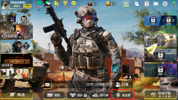 1.打开使命召唤手游,点击页面右下角【安全屋】。