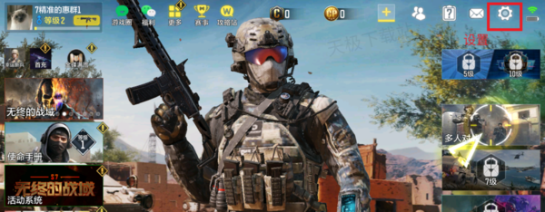 1.在使命召唤手游首页点击右上角【齿轮】选项。