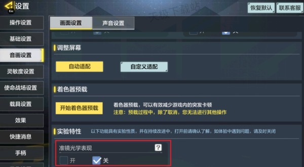 3.然后将最下方的【准镜光学表现】关闭。