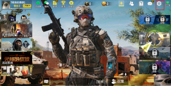 1.打开使命召唤手游,点击右上角【齿轮】选项。