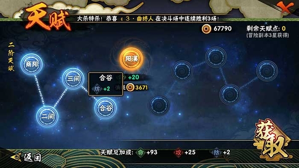 2,如果你想获得更多的天赋加成,我们首先是需要有天赋点的,想获得天赋点也很简单,只要在普通的剧情模式里面达到三星标准通关就能够得到天赋点。参考下图全部通关,而且达到三个条件就可以获得一个三星通关,从而获得天赋点了。