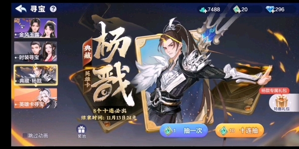 想要获得杨戬英雄卡,可以留意游戏推出的特定活动,比如“杨戬英雄卡寻宝”活动,通过10连抽的操作就有可能获得这张英雄卡,而且在特定的“封神风云”活动里,还可以提高典藏英雄卡和极品英雄卡的获取几率,来增加我们拥有英雄卡的可能性。