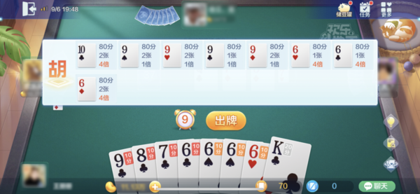 这种玩法要使用两副扑克牌,需要拿掉两张大王和两张小王以及2345牌型,共计72张牌,在开局时给4个玩家每人发7张牌,用户通过摸打的方式把手中的8张牌全部组成特定的牌型就能够胡牌,也就取得胜利了。