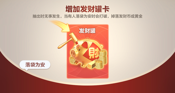 拥有这张运势卡且已经落袋为安的用户,在发财币少的情况下,可以变回没有落袋为安的状态来重新参与抽卡。