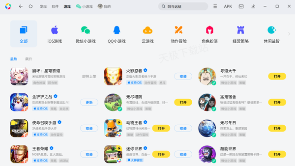 3.点击腾讯应用宝上方【游戏】,可以发现它包含了非常多热门的手机游戏,包括王者荣耀、火影忍者等等,部分游戏还可以在云端游玩,无需下载。