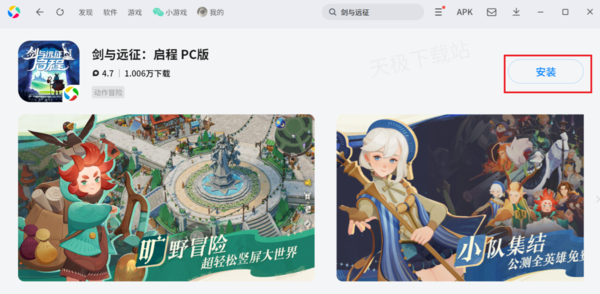 小编调查后发现,《剑与远征启程》PC端可以通过官方网站、腾讯应用宝、MuMu模拟器、雷电模拟器等平台正版下载。小编更推荐在官方网站或腾讯应用宝下载,官方网站能够提供安全的下载路径,适合单纯想体验此游戏的小伙伴,而腾讯应用宝不仅提供了安全的下载路径,还包含了其他丰富的正版手机游戏资源,并且对每款游戏都做了优化,保证游戏能够稳定流畅地运行。下面天极小编为大家介绍两种渠道的具体下载方法。