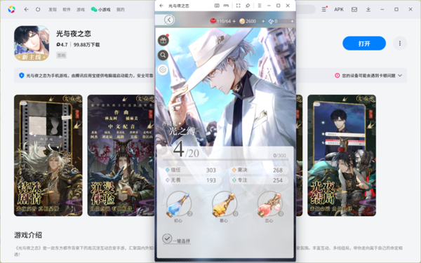 今天的攻略为大家讲解了光与夜之恋手游电脑版的不同结局以及提升好感度的技巧,希望对大家带来帮助。感兴趣的小伙伴可以在财神爷站网安装腾讯应用宝平台,并搜索光与夜之恋进行体验。