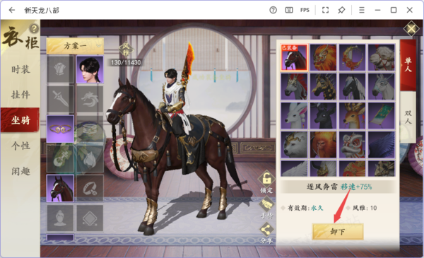 4、如果不想使用坐骑的话,直接点击坐骑下方的【卸下】按钮即可。