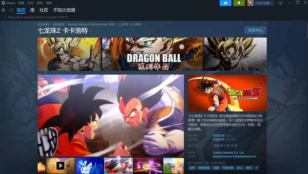 3.《七龙珠Z卡卡罗特》(原298元,现74.50元)