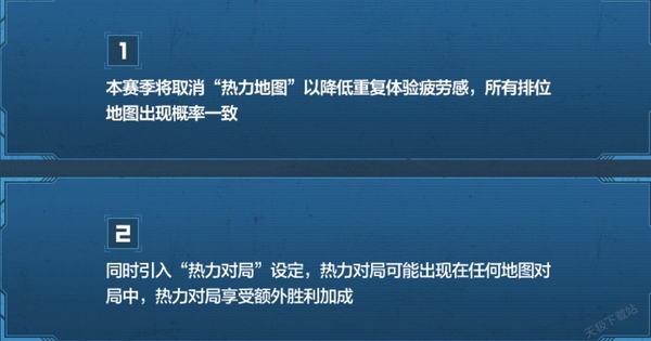 5.热力对局机制:本赛季取消了“热力地图”,转而引入“热力对局”,以减少玩家对特定地图的重复体验。热力对局随机出现在任意地图中,为胜者提供额外的胜利加成,增加了比赛的刺激性和不确定性。