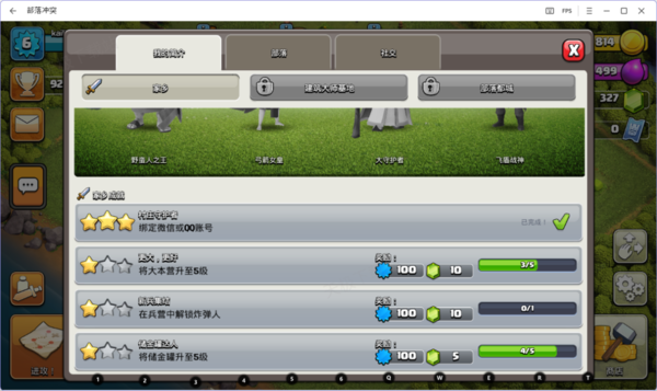在游戏的过程中,玩家可以通过大量的建造以及攻击来完成家乡成就,成就完成后即可领取相应的宝石奖励,并且随着成就任务难度的增加奖励也会大幅提升。