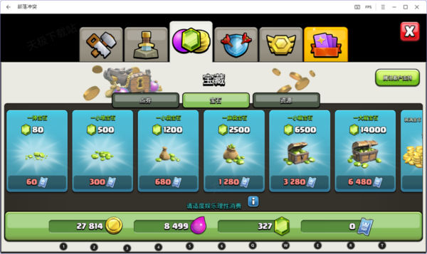 部落每次主动进攻或防御胜利之后,都会获得一定数量的奖杯,而当奖杯累计达到1250个的时候,就可以获得450个宝石。