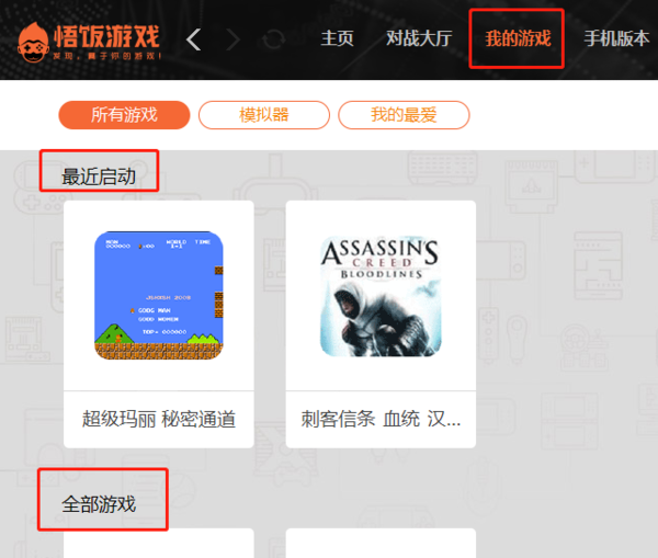 打开悟饭游戏厅后,在主页选择我的游戏,在我的游戏一栏中能查看最近启动的以及全部下载的游戏,找到想要玩的游戏,点击打开。