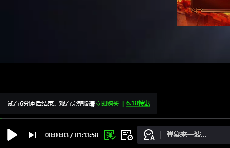 或者是在画面的左下角,看到一个“观看完整版请立即购买”的提示点击绿色的文字部分,然后也可以跳转到购买界面,购买完成后就可以看完整版的电影了。