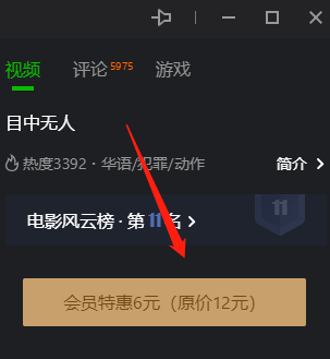 在影片播放界面的右侧可以看到一个“会员特惠6元(原价12元)”选项,点击这个选项就可以跳转到付费界面去购买了。