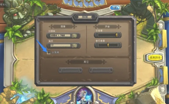 去掉“全屏幕”选项前面的勾选框,这样游戏就会从全屏模式切换到窗口模式。请注意,有些版本的《炉石传说》可能直接提供“窗口化”选项,您只需选择它即可。