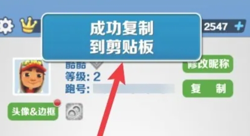 点击复制按钮后,你的跑号就会被成功复制到手机的剪贴板中。此时,你可以在其他需要输入跑号的地方粘贴它,比如使用地铁跑酷直充工具时。