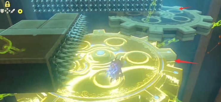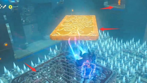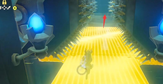 在最后的尖刺通道中,您需要特别小心。首先,从第一个大石头的右侧通道过去,然后在第二个石块上从其上方通过(注意右侧不可行,因为尖刺会靠近)。第三个石块则需要您慢慢通过,先从正中间通道避开两个尖刺,然后从左侧通道靠近石块并观察尖刺的运动,最后安全通过。